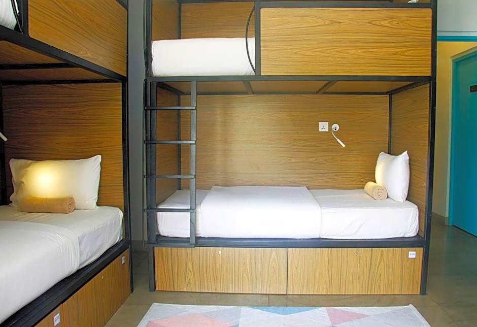 This bed in dormitory has a microwave and air conditioning.